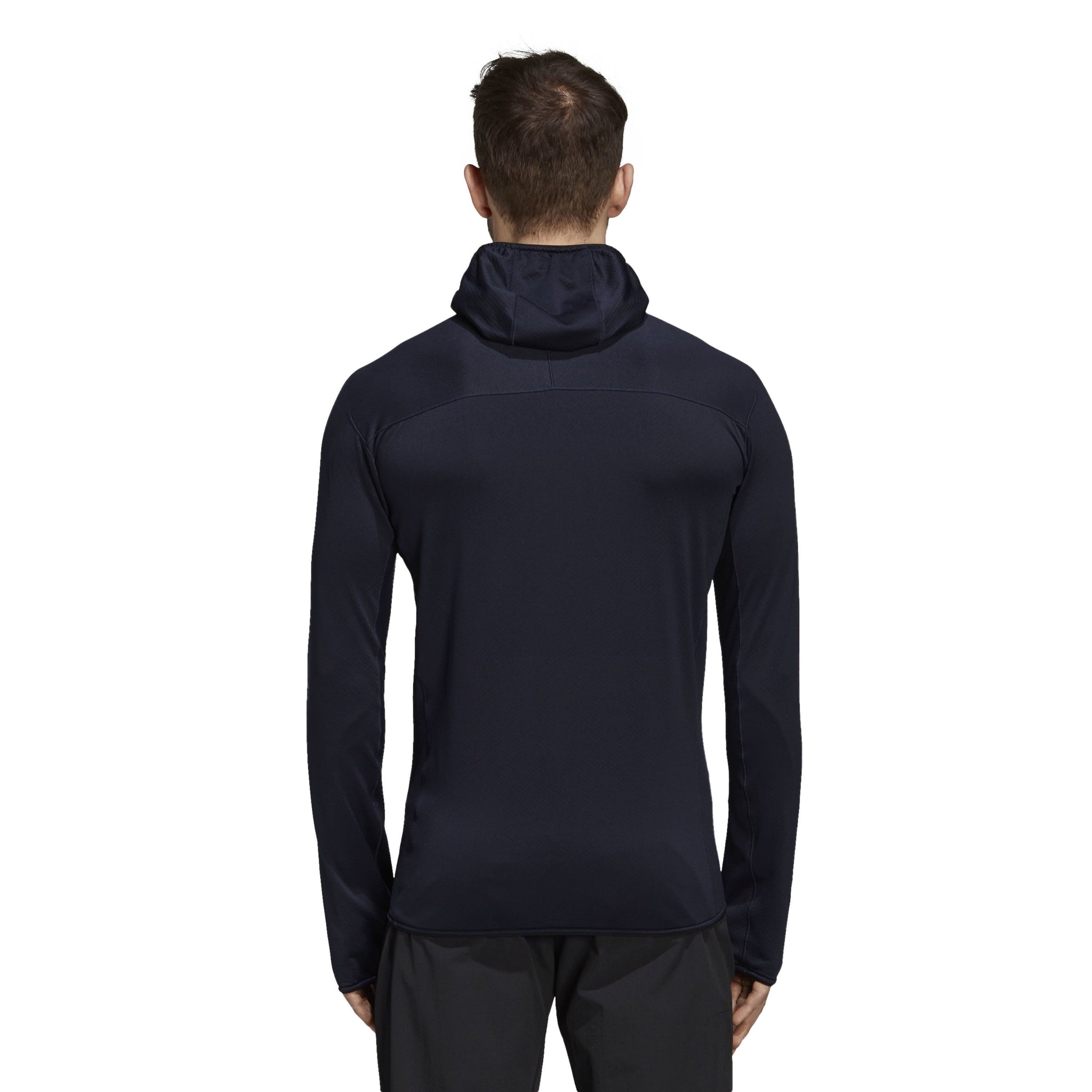 Designed for ease of movement and breathability, this men's fleece hoodie features a waffle grid interior to promote breathability and moisture management. The slim cut and fitted hood layer well under a shell, and the soft fleece fabric features built-in stretch for unrestricted movement.